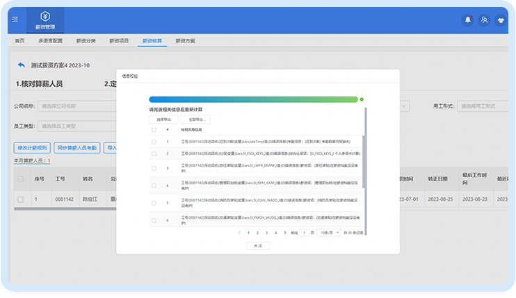 薪资计算前自动进行校验,智能分析定薪、调薪信息,数据缺失自动提醒;核算过程实时记录,保障薪资准确
