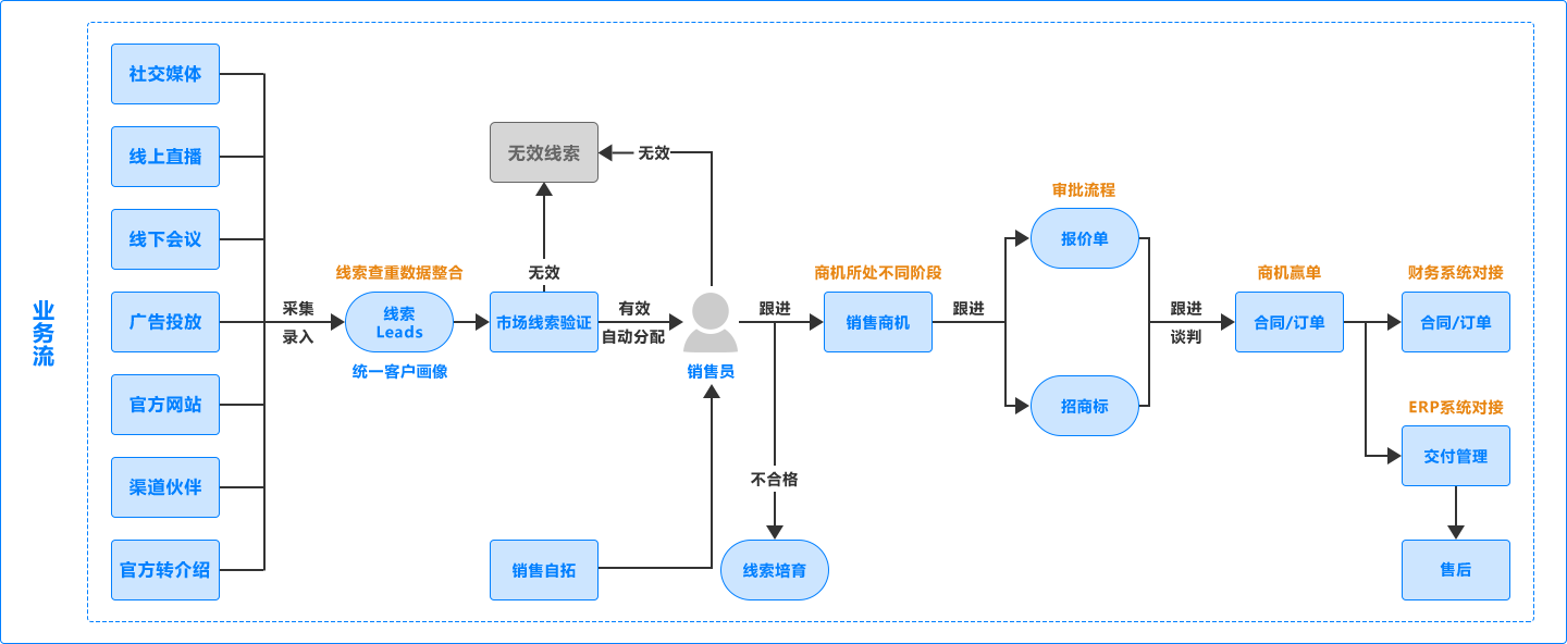 销售流程不规范、不透明、低效等问题,导致销售周期长、转化率低