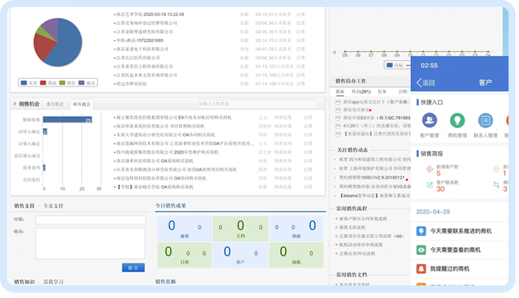 集中展现客户信息、销售商机、合同、收款、待办、客户联系 计划、销售工具集等内容,方便销售人员快速处理工作,简单便捷